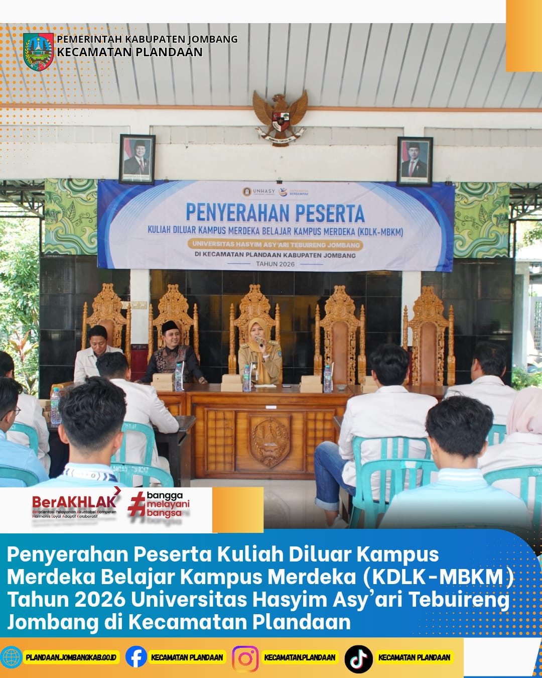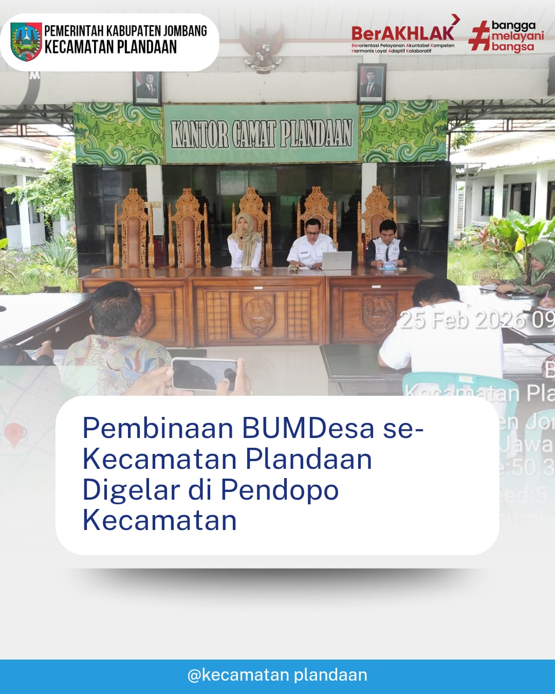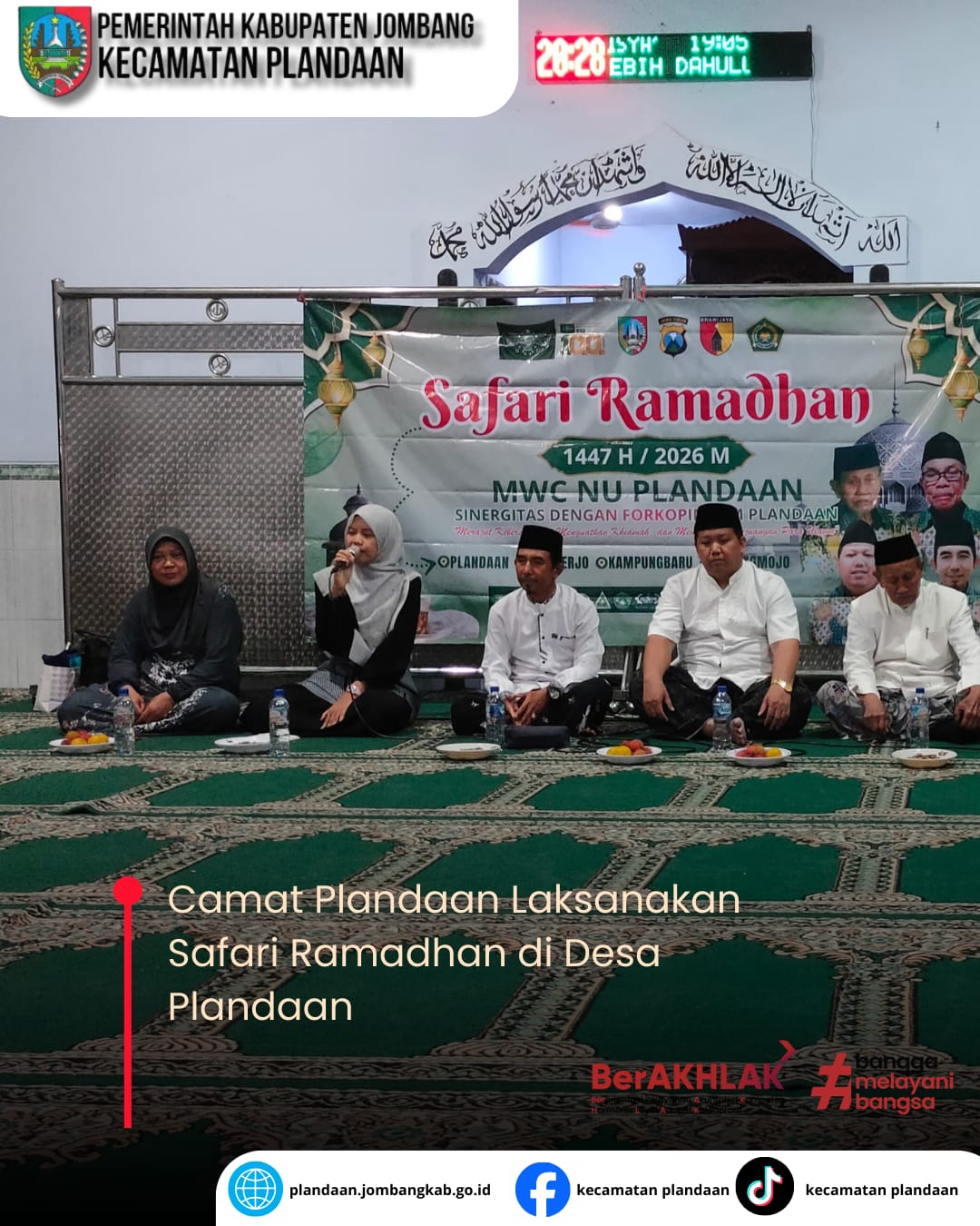 Assalamu’alaikum Warahmatullahi Wabarakatuh. Salam Sejahtera bagi kita semua. Puji syukur kita panjatkan ke hadirat Allah SWT, karena atas rahmat dan karunia-Nya, Website Resmi Kecamatan Plandaan ini dapat kami hadirkan sebagai salah satu sarana informasi dan komunikasi bagi masyarakat. Melalui website ini, kami berharap dapat memberikan kemudahan akses bagi masyarakat untuk memperoleh informasi seputar program, kegiatan, pelayanan, serta potensi yang ada di Kecamatan Plandaan. Kami terus berkomitmen meningkatkan kualitas pelayanan publik yang transparan, akuntabel, dan responsif terhadap kebutuhan masyarakat. Akhir kata, kami mengucapkan terima kasih atas kepercayaan, dukungan, dan partisipasi seluruh elemen masyarakat demi kemajuan Kecamatan Plandaan yang lebih baik. Wassalamu’alaikum Warahmatullahi Wabarakatuh.