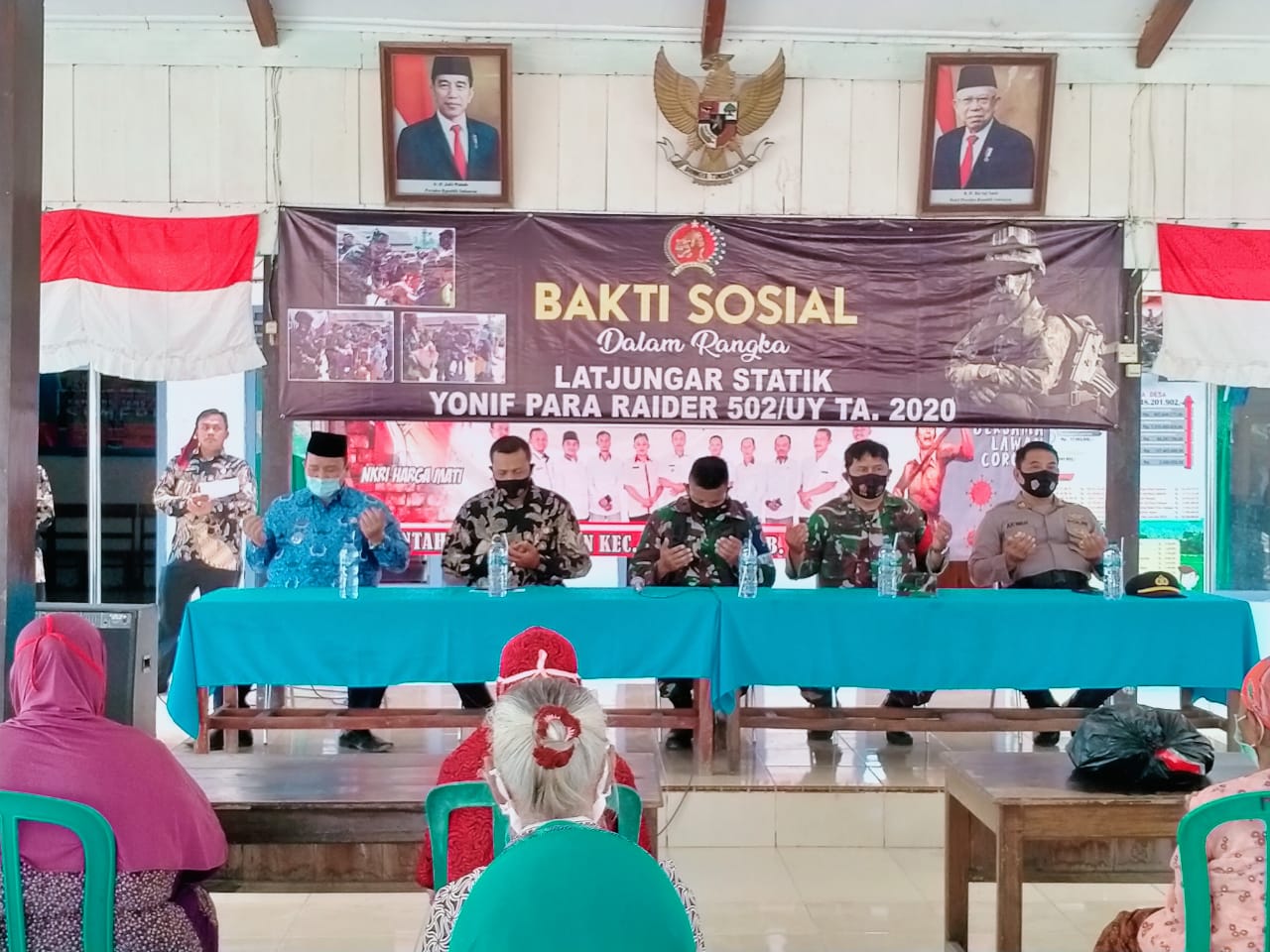 JOMBANGKAB - Bertempat di Balai Desa Plandaan di laksanakan Bakti Sosial pada kamis pagi(17-09-2020) , Bakti Sosial ini dalam rangka pelatihan terjun Penyegaran di wilayah Kecamatan Plandaan oleh YONIF PARA RAIDER 502/UY TA.2020 Malang. Bakti Sosial ini di laksanakan dengan membagikan bantuan sosial bagi masyarakat kurang mampu di wilayah Desa Plandaan.