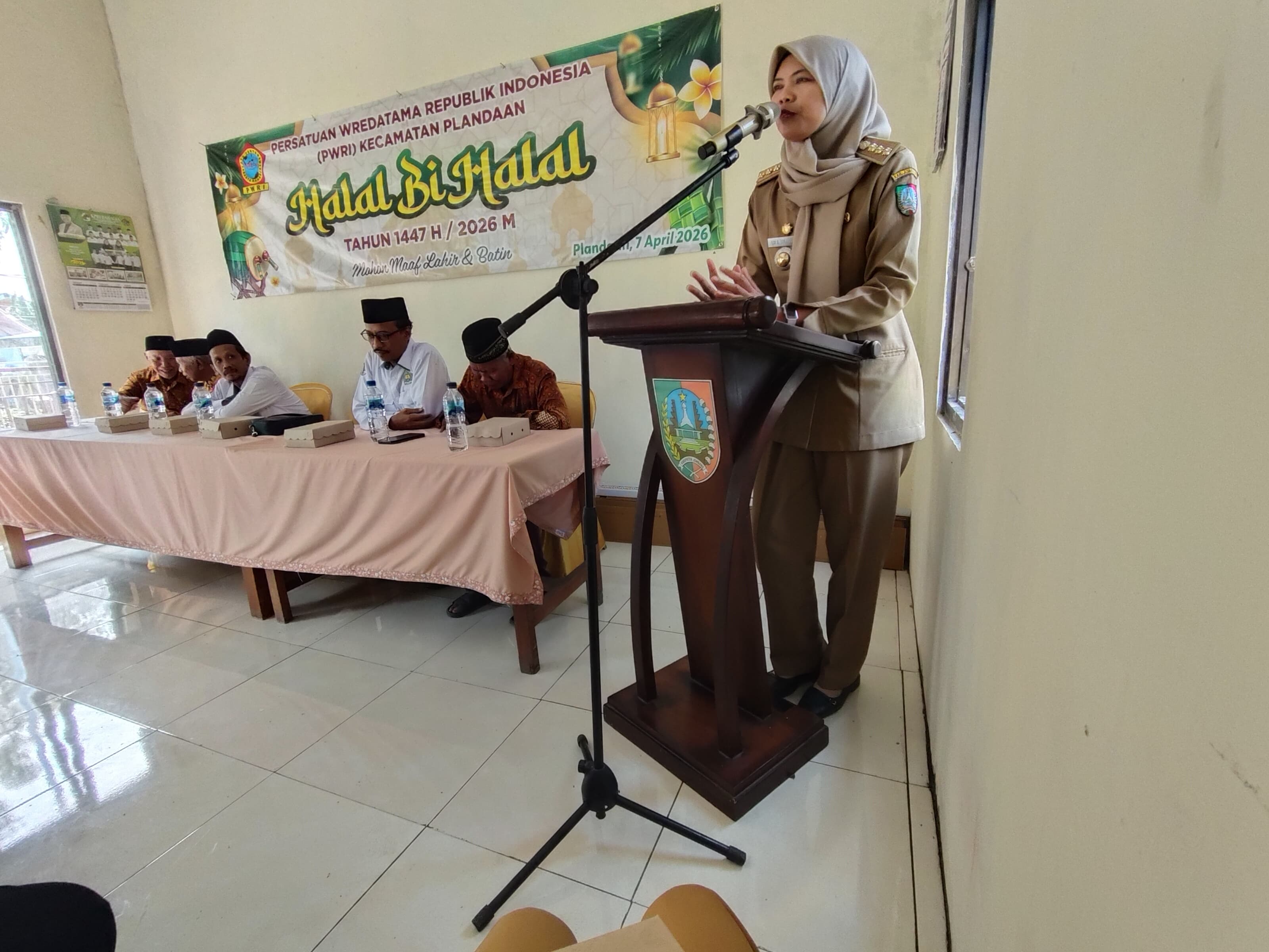 Plandaan, 7 April 2026 — Camat Plandaan menghadiri acara Halal Bihalal yang diselenggarakan oleh Persatuan Wredatama Republik Indonesia (PWRI) Kecamatan Plandaan. Kegiatan tersebut berlangsung di ruang pertemuan Gedung Aspirasi MWC NU Bangsri, Kecamatan Plandaan, pada Selasa (7/4/2026).