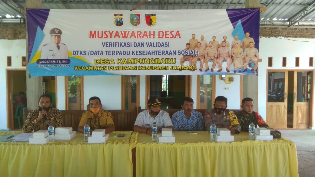JOMBANGKAB - Bertempat di Pendopo Balai Desa Kampungbaru , pihak Kecamatan Plandaan yang bekerja sama dengan pihak Desa Kampungbaru melakukan musyawarah desa verifikasi dan validasi DTKS(Data Terpadu Kesejahteraan Sosial) pada selasa pagi(17-11-2020).