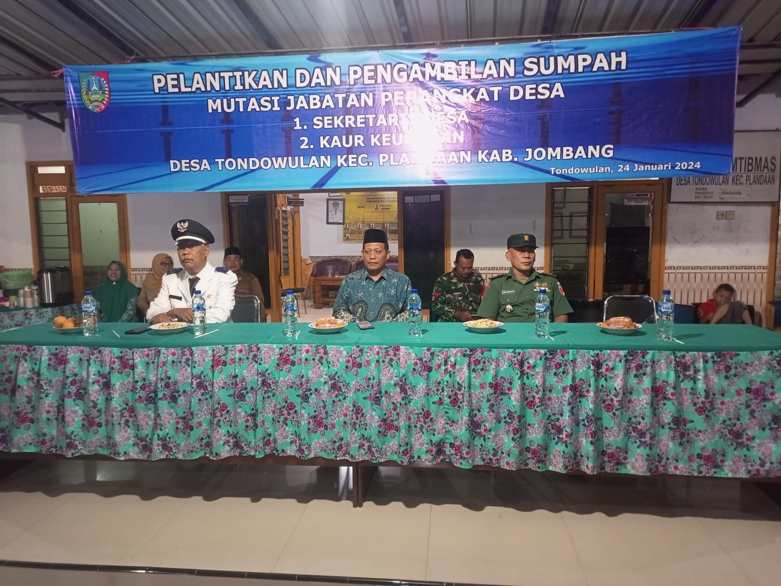 Dalam rangka menindaklanjuti Sekretaris Desa Tondowulan yang sudah memasuki masa Purna Tugas , maka dilaksanakan Pelantikan dan Pengambilan Sumpah Mutasi jabatan Perangkat Desa Tondowulan pada hari Rabu malam pukul 19.00 WIB tanggal 24 Januari 2024. Acara Pelantikan ini dihadiri oleh Camat Plandaan beserta Staf Kecamatan Plandaan, Kapolsek Plandaan, Danramil Plandaan, Kepala Desa Tondowulan beserta Perangkat Desa Ketua BPD Tondowulan beserta anggotanya, Lembaga Masyarakat Desa , Ketua TP-PKK Desa Tondowulan beserta anggotanya serta Tokoh masyarakat dan Tokoh Agama di Desa Tondowulan. Kepala Desa Tondowulan memberikan amanatnya kepada Bapak Untung yang sebelumnya menjadi Kaur Keuangan dan sekarang di lantik sebagai Sekretaris Desa , dan Bapak Andik yang dulunya sebagai Kaur Perencanaan kini di Mutasi ke Kaur Keuangan menggantikan jabatan Bapak Untung yang dulunya sebagai Kaur Keuangan.
