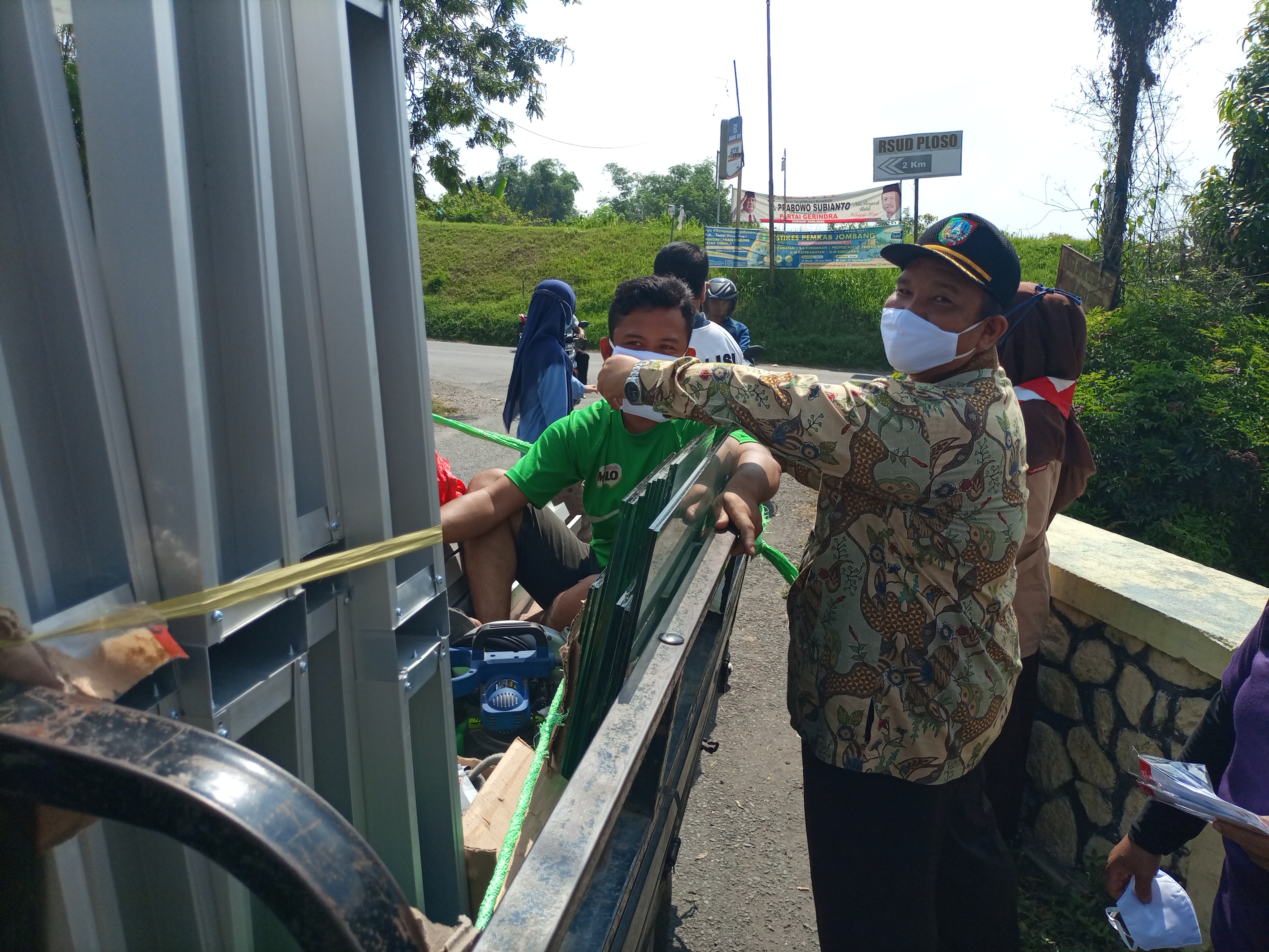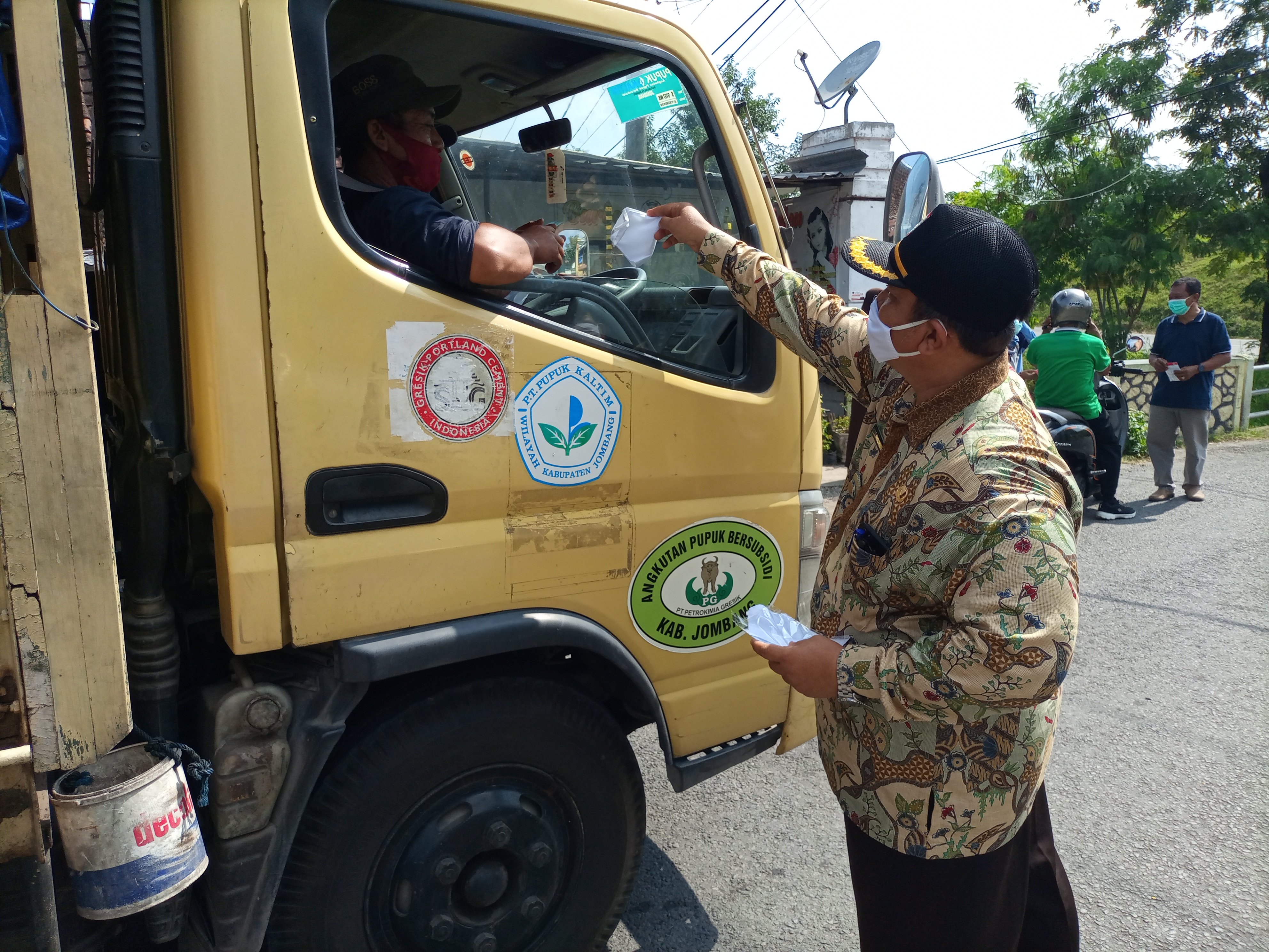 JOMBANGKAB - Guna Mencegah dan memutus rantai penyebaran covid19 khususnya di wilayah Kecamatan Plandaan , pihak Kecamatan Plandaan yang berkerja sama dengan Puskesmas Plandaan dan Polsek Plandaan melakukan kegiatan pembagian masker di Desa Karangmojo, tepatnya di Pertigaan jalan Raya Karangmojo Kecamatan Plandaan pada jumat pagi(13-11-2020).