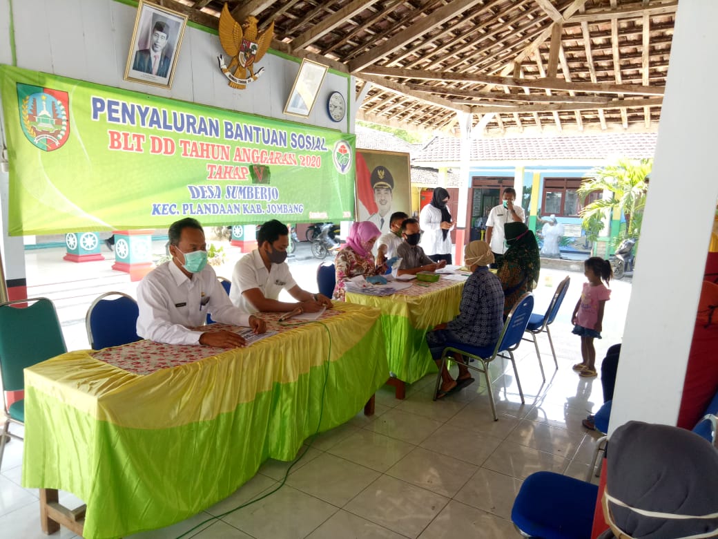 JOMBANGKAB - Penyaluran BLT DD tahap V kini mulai bertahap di salurkan di tiap - tiap Desa di Wilayah Plandaan , kali ini Pihak Kecamatan Plandaan menghadiri acara pembagian BLT DD tahap V di Desa Sumberjo pada hari rabu (07-10-2020).Acara ini di hadiri oleh Tim dari Kecamatan yang di pimpin oleh Sekcam dan di dampingi oleh Kasi Pemerintahan , Kasi Trantib dan Kepala Desa Sumberjo serta Babinsa sumberjo.