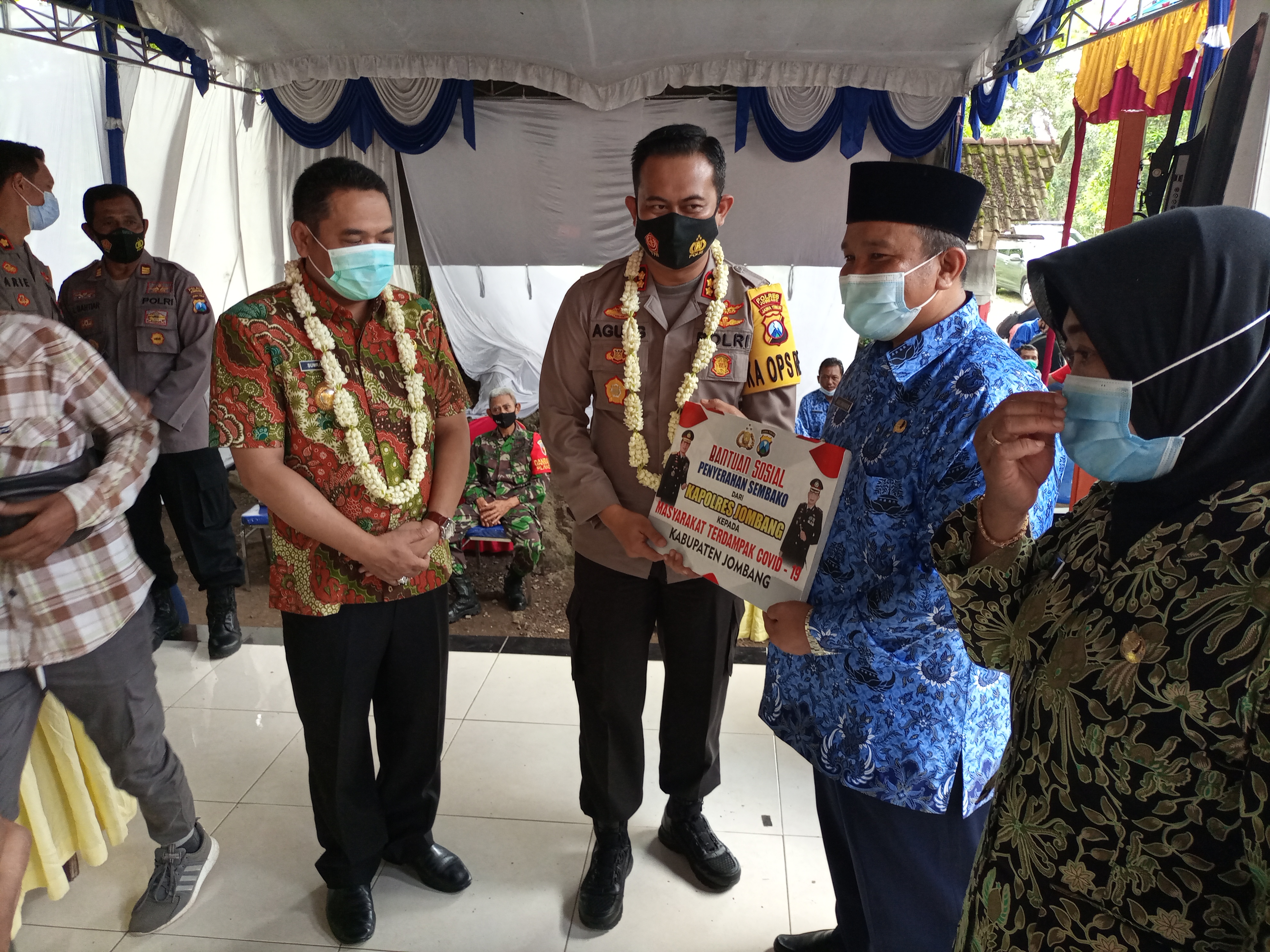 Wakil Bupati beserta Kapolres Jombang juga menyerahkan Bansos kepada Camat Plandaan bagi masyarakat Kecamatan Plandaan yang terdampak Covid 19.