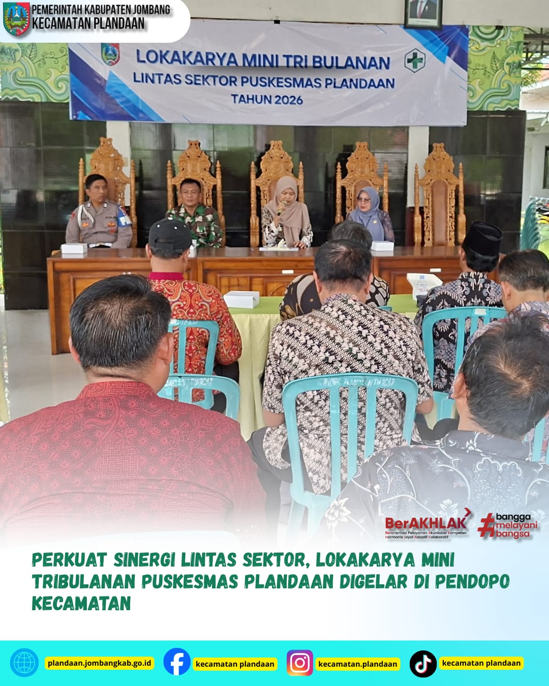 Plandaan – Camat Plandaan menghadiri kegiatan Lokakarya Mini (Lokmin) Tribulanan Lintas Sektor Puskesmas Plandaan yang digelar di Pendopo Kecamatan Plandaan, Kamis (12/2/2026). Kegiatan ini menjadi forum koordinasi dan evaluasi bersama dalam rangka meningkatkan pelayanan kesehatan kepada masyarakat.