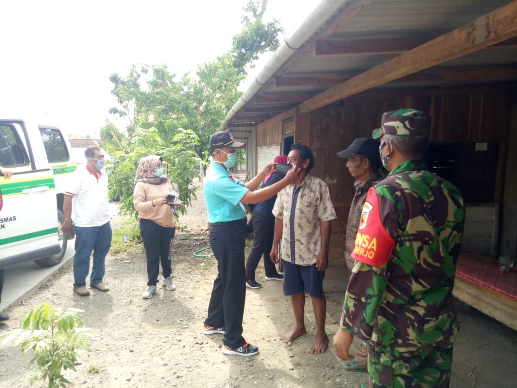 JOMBANGKAB - Guna untuk mencegah dan memutus rantai penyebaran covid 19 pihak Kecamatan Plandaan yang bekerja sama dengan Pihak Desa Sumberjo , Koramil Plandaan , Polsek Plandaan serta Puskesmas Plandaan melakukan kegiatan sosialisasi pencegahan covid 19 di Desa Sumberjo Kecamatan Plandaan Jumat Pagi (25-09-2020).