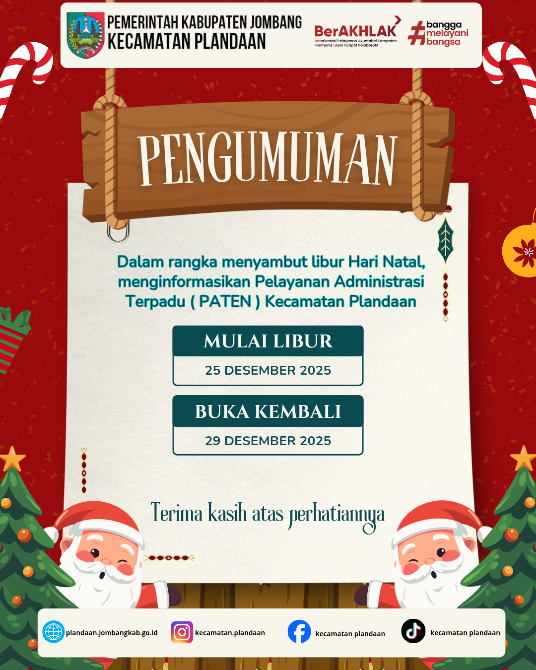 Jam Pelayanan Kantor Kecamatan Plandaan